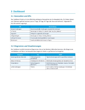 Das Dashboard bietet auf einen Blick die wichtigsten Kennzahlen des Sendungsbetriebs. Die Daten können